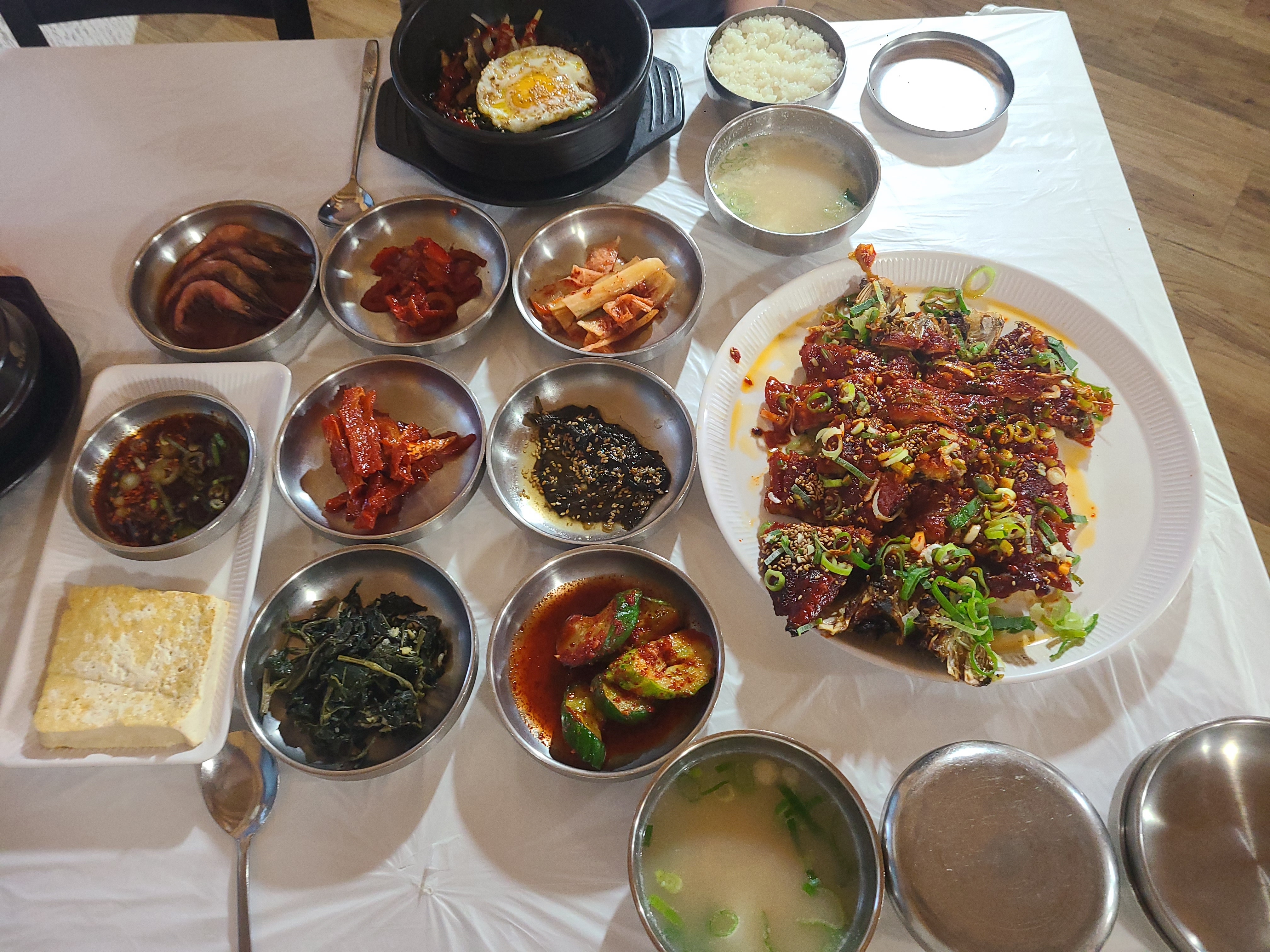 우리는 황태구이와 산채비빔밥을 주문했다.