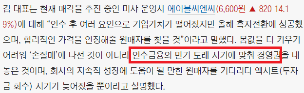 6~9개월 내에 매각을 완료하겠다는 내용으로 구두 합의 했다고 한다.
