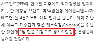 미샤 매각관련 기사 (출처 : 머니투데이)