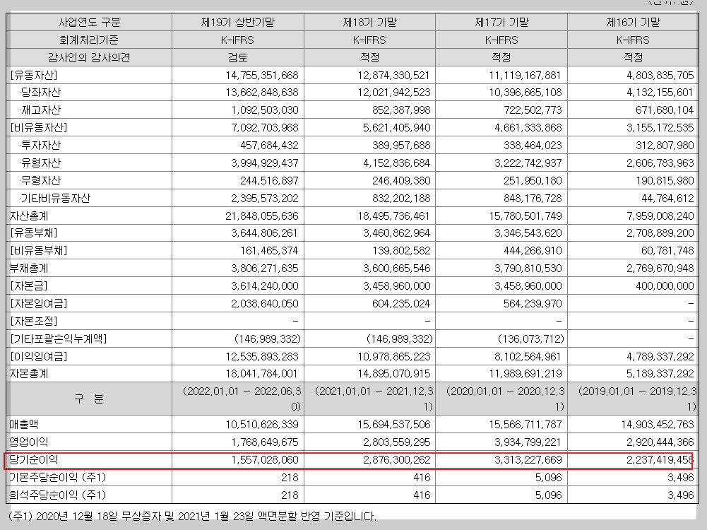 당기순이익이 폭발적으로 증가하진 않지만 꾸준히 이익은 내는 회사네요.