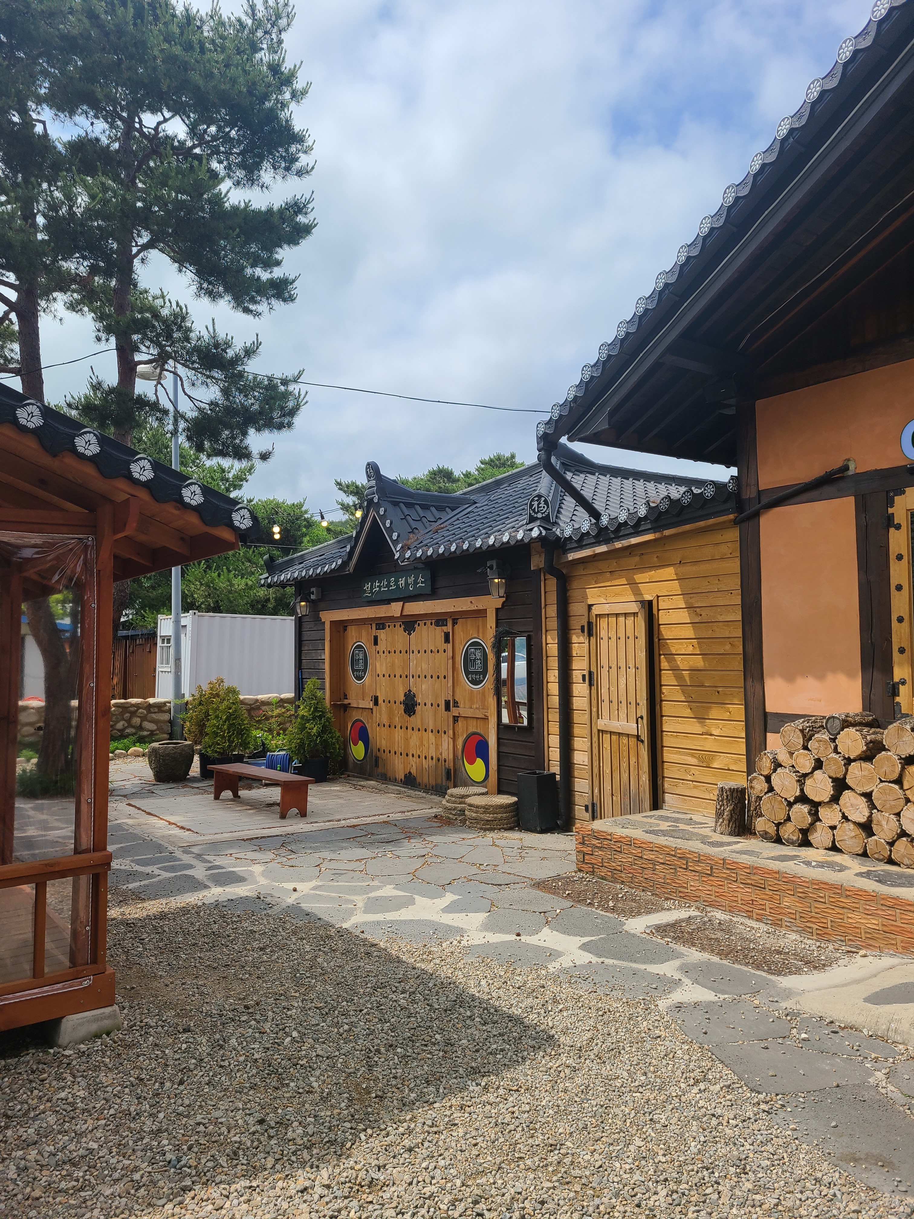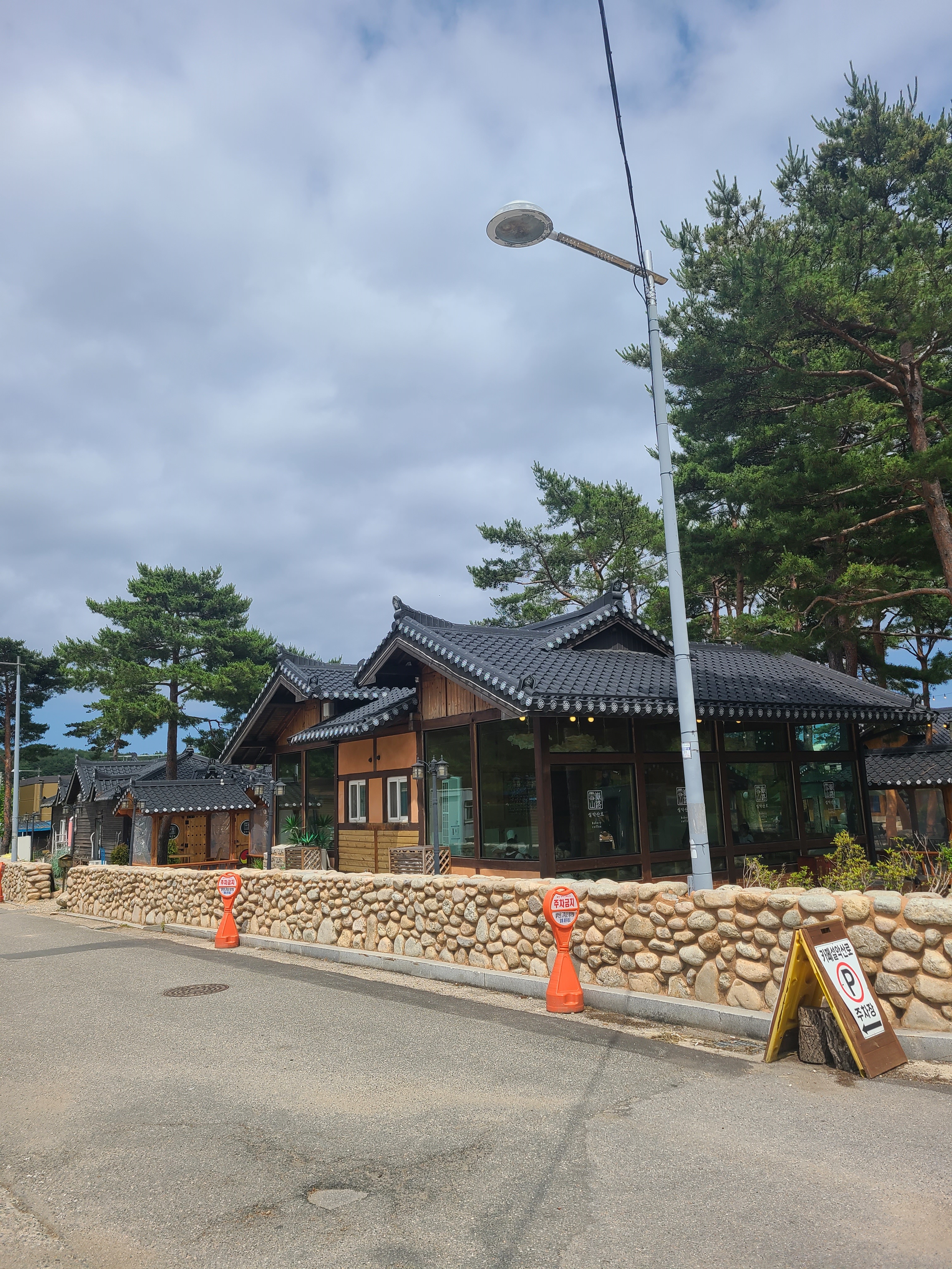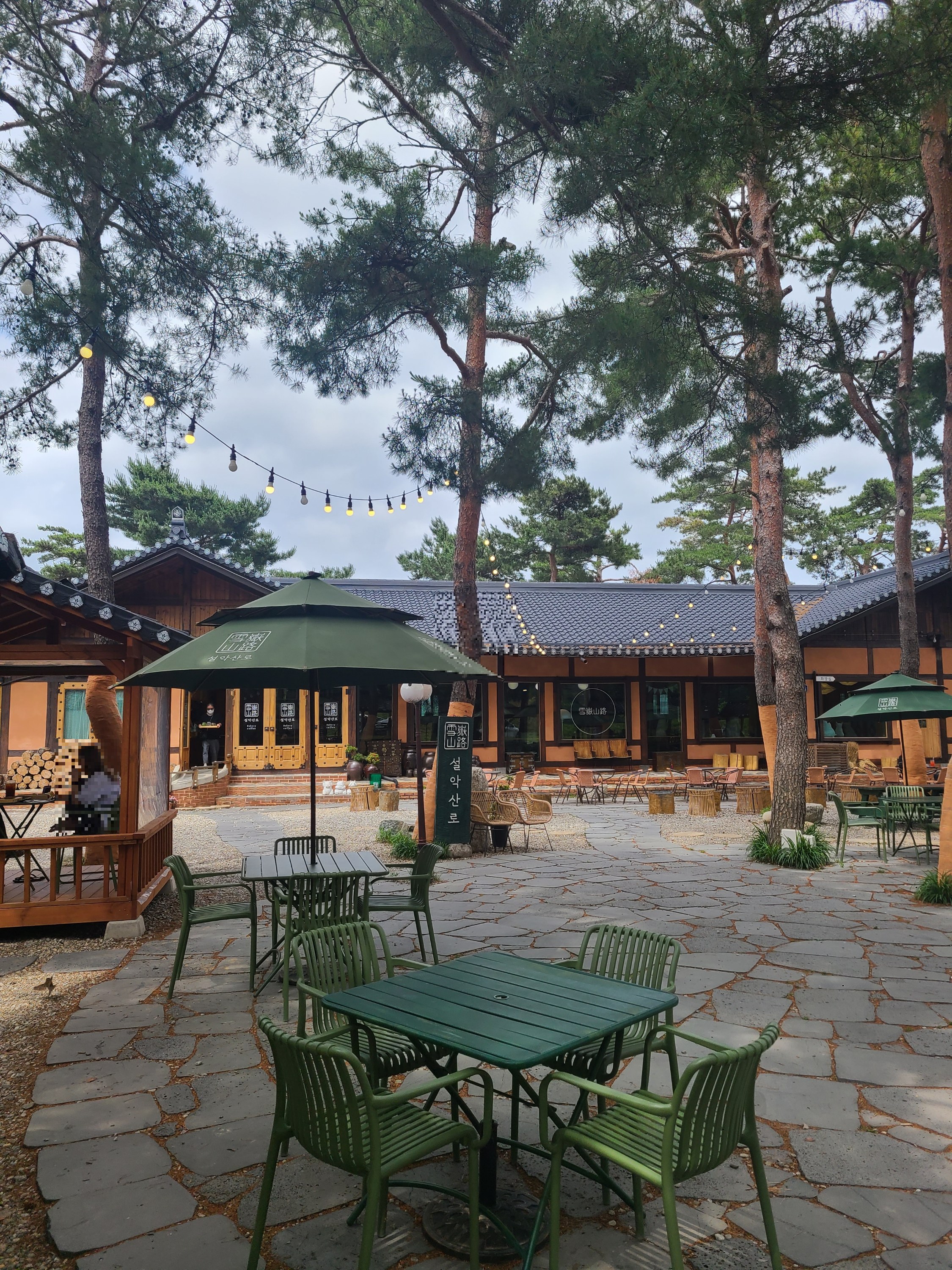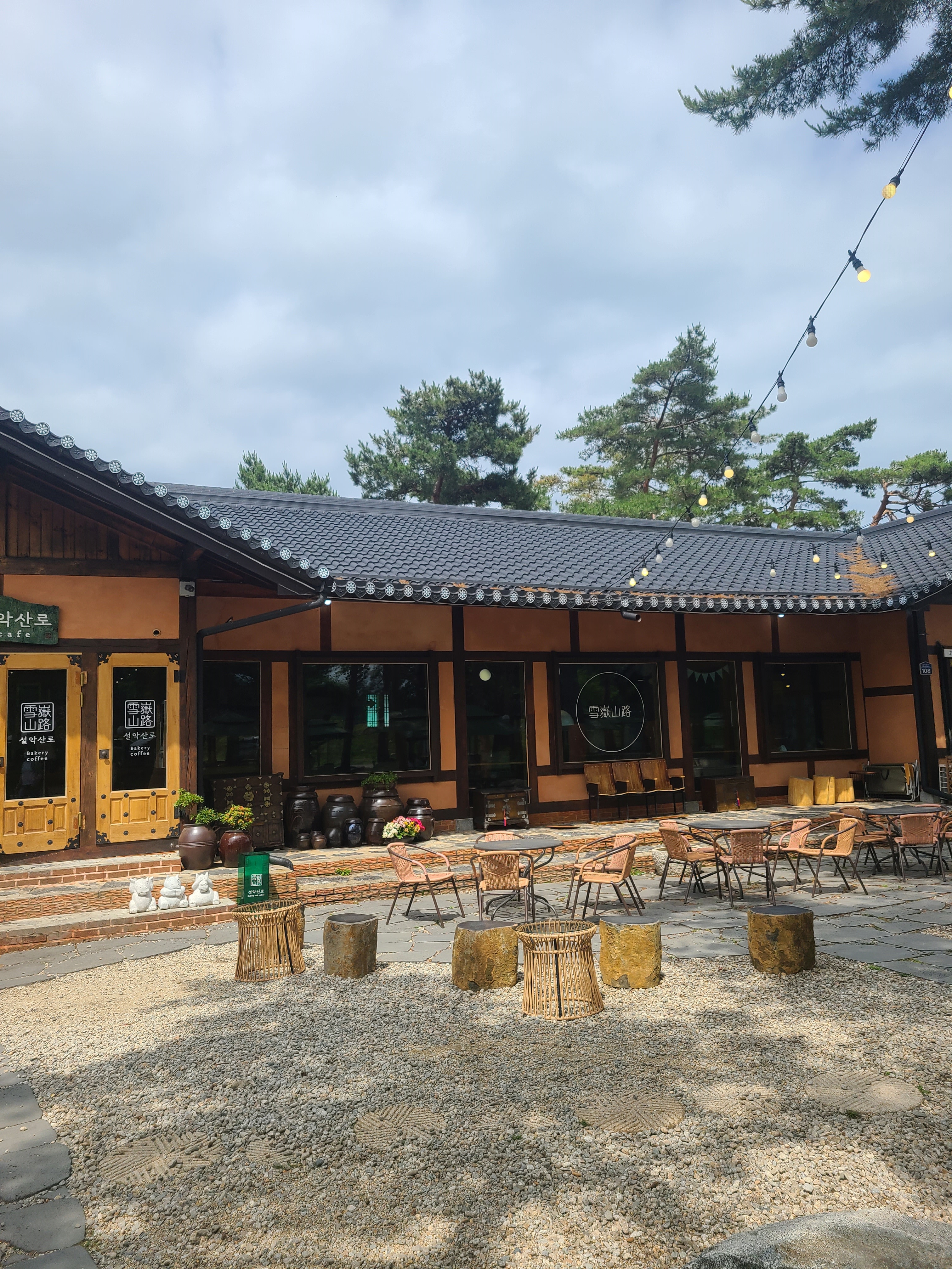 커다란 소나무와 한옥스타일의 카페가 정말 잘 어울린다.