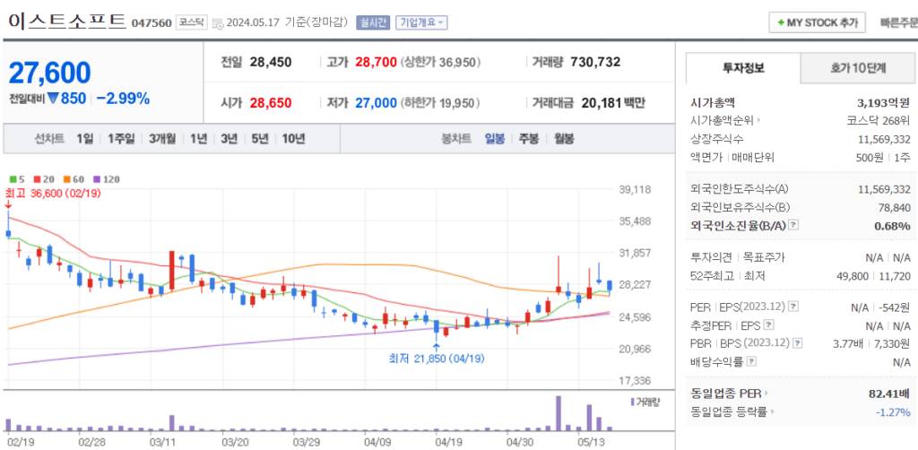 선정이유 : 이스트소프트는 재택근무에 적합한 클라우드 협업 플랫폼인 '팀업'을 운영 중입니다. 저출산 대책에 따른 재택근무 관련 세부 사항이 공개되면, 이스트소프트에 대한 관심이 집중될 수 있습니다.