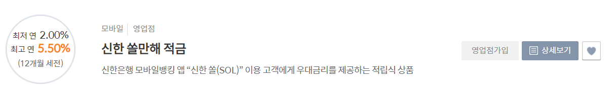 3. 신한은행(신한 쏠만해 적금, 최고 5.50%)