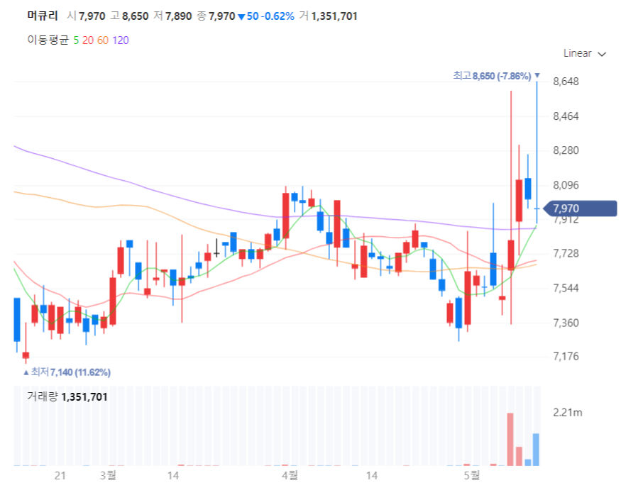 시총도 너무 크고..주가 위치가 조금 고가에 있어서 위험하기도 하지만 리오프닝이라는 나름의 테마가 형성되는 종목이라 어떻게 움직일지 한번 볼까한다.