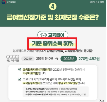 즉, 급여교육은 4인가구 기준으로
