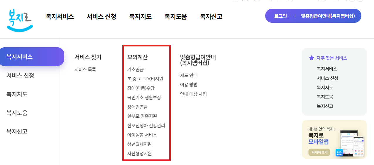 보건복지부에서 운영하는 복지로에서도