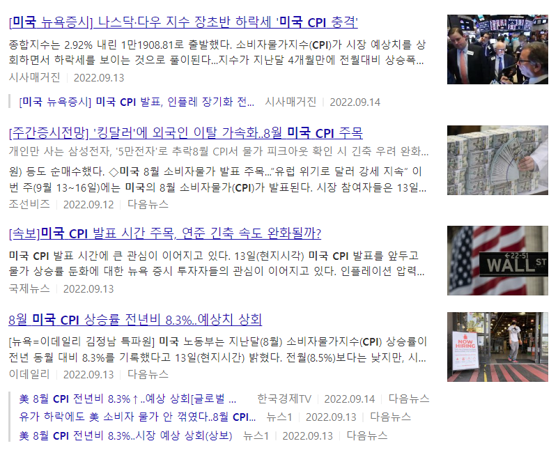 실제로 저번 CPI 발표는 피크를 찍고 내려왔지만, 예상치보다는 높아서 주식시장이 폭락하는 결과를 가져왔다.