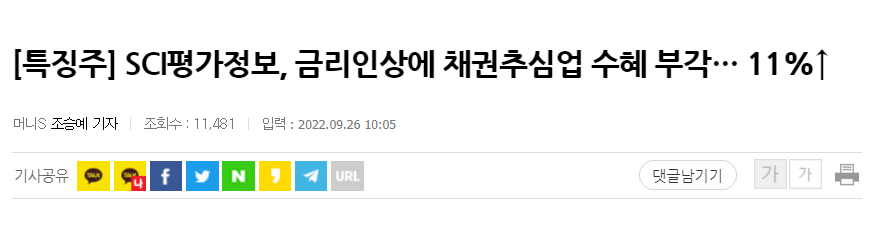 SCI평가정보 주가도 금리상승 수혜를 많이 받았다.
