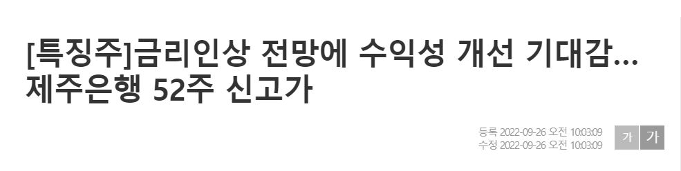 대표적인 금리 상승 수혜주 제주은행 주가 차트를 보면 금리 상승시기에 꾸준한 우상향을 보여준다.
